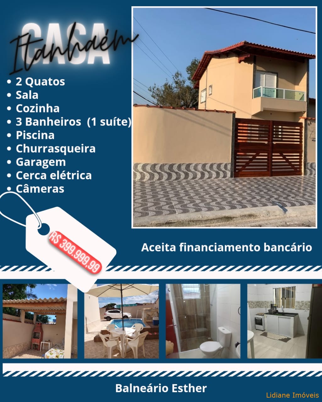 Lindo sobrado em bairro de moradores, são 02 dormitórios, sendo 01 suíte, mais 02 banheiros sociais, sala e cozinha ampla, uma belíssima piscina com cascata, amplo espaço de quintal, cerca elétrica com circuito interno de câmera em Itanhaém