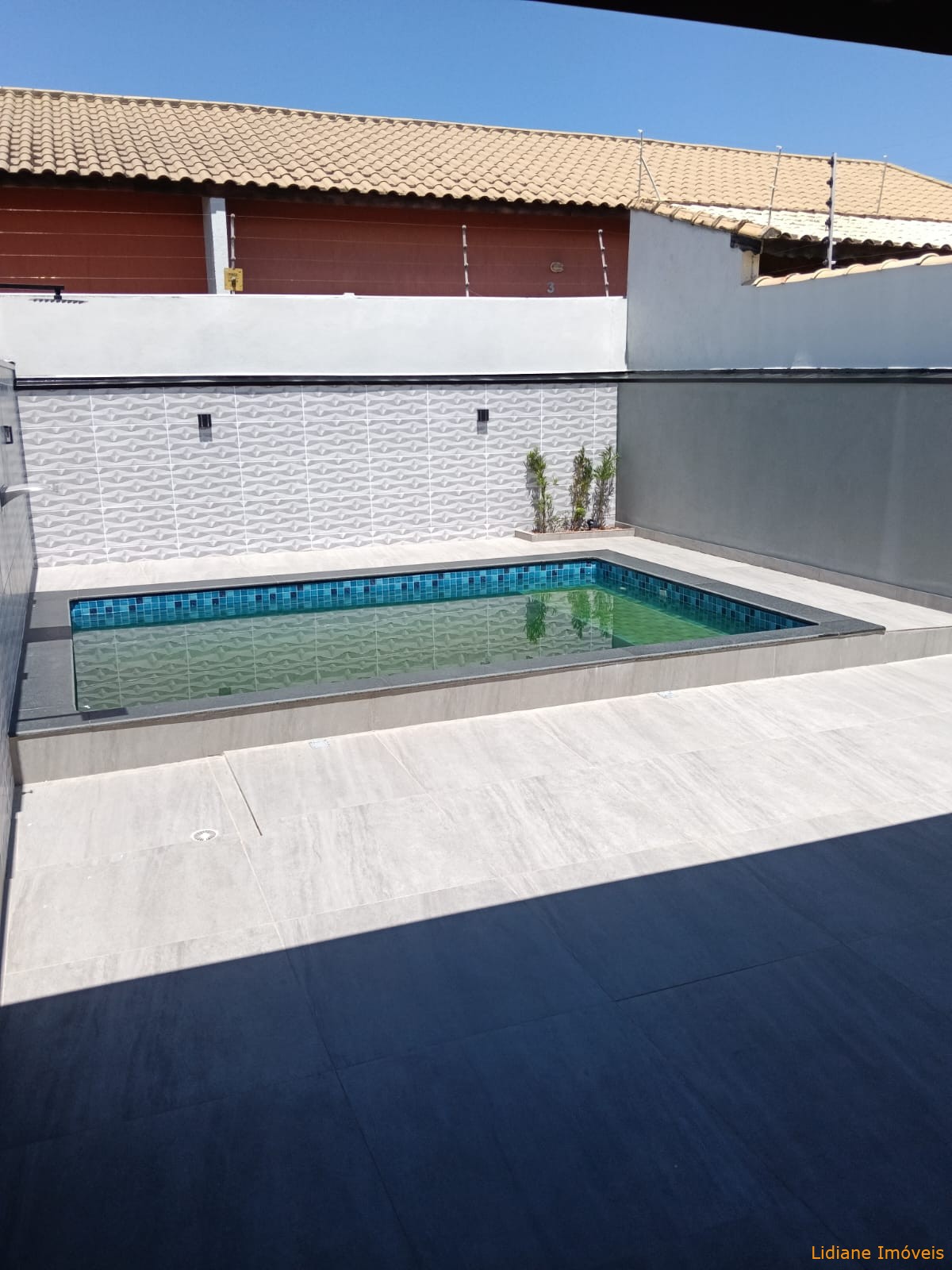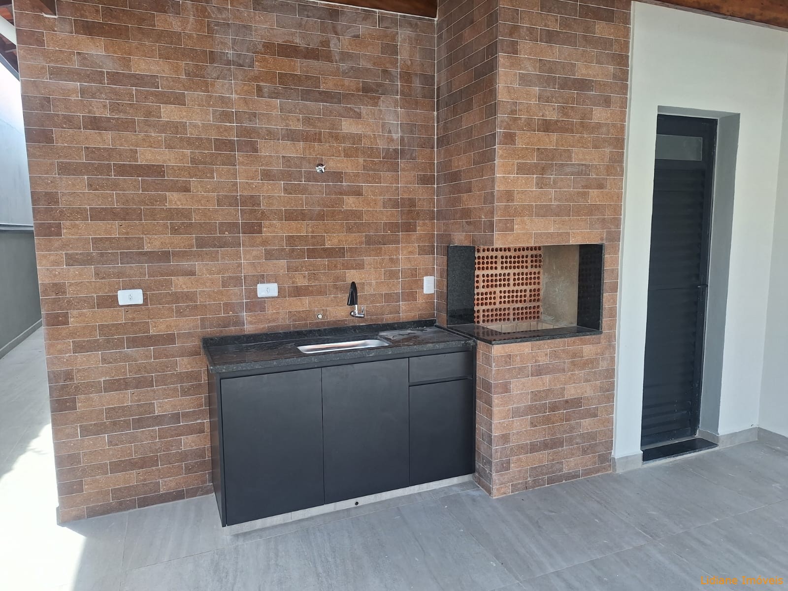 com churrasqueira revestida, pia em granito, 02 duchas tira-areia e 01 lavabo