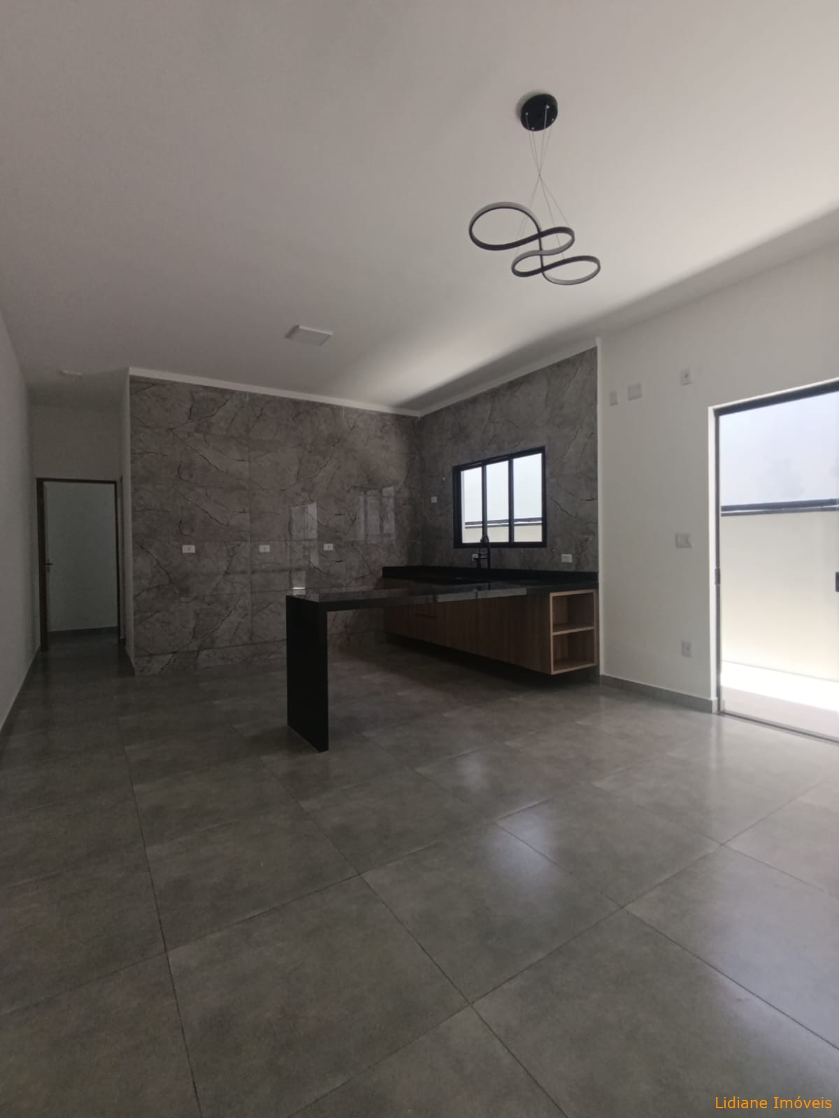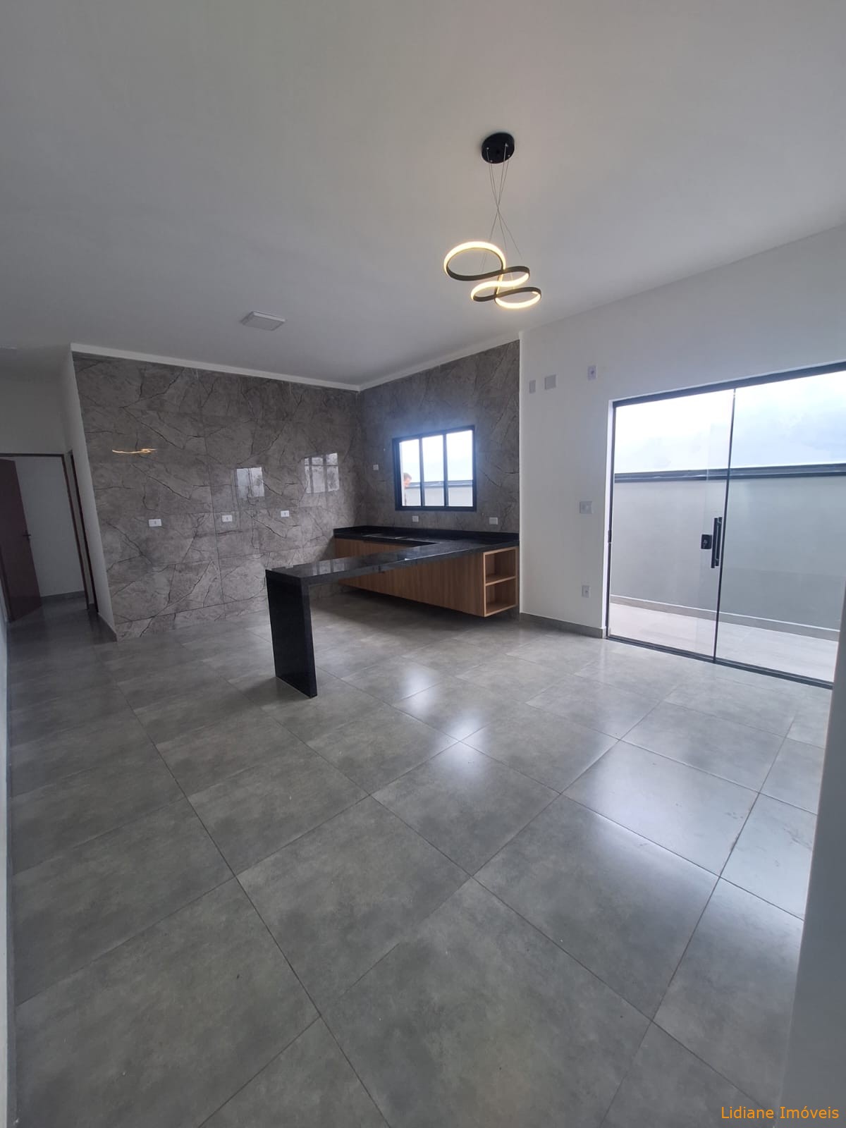 social e sala integrada à cozinha com gabinetes.