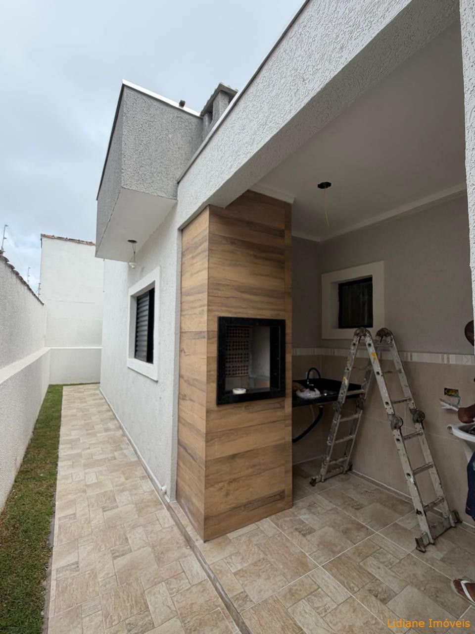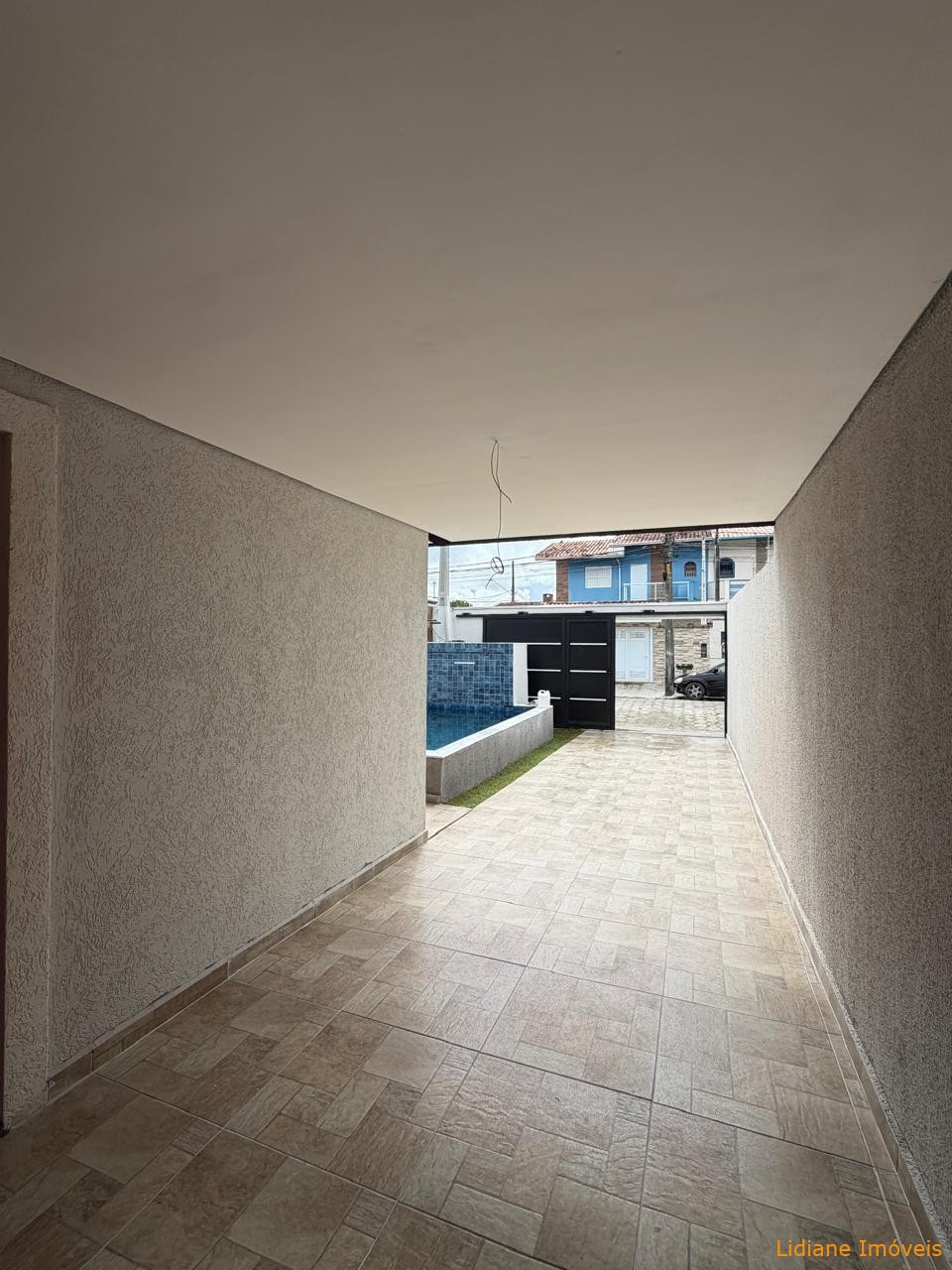 lavanderia e esquadrias em alumínio preto. São 03 vagas de garagem, sendo uma
